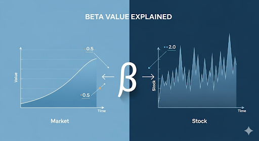 ベータ値(β)とは、市場全体(株式市場の平均)の動きと比べて、個別の株価がどれだけ変動するかを示す指標です。